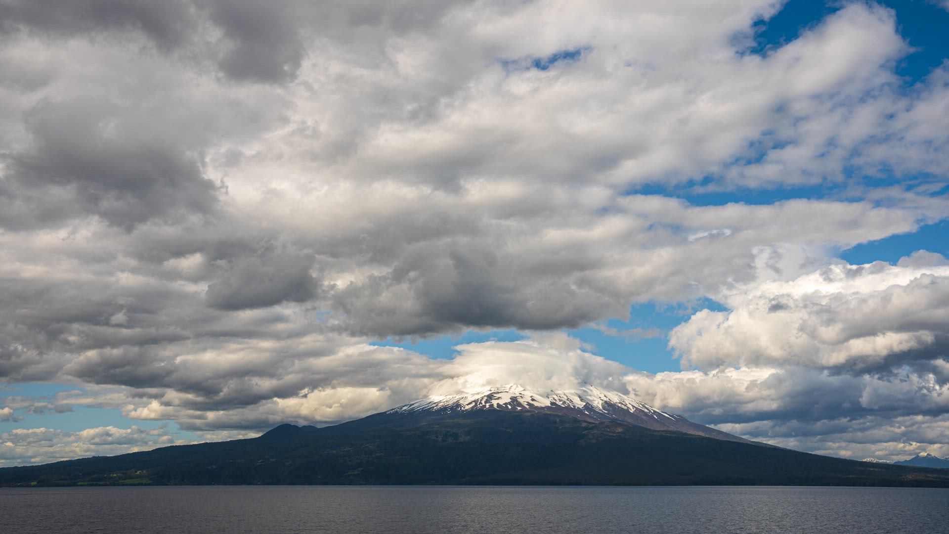 4K Calbuco volcano with clouds in Chile