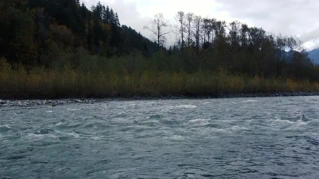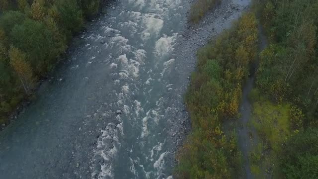 Mountains in the background. A river cuts a channel through a rocky landscape in Iceland.