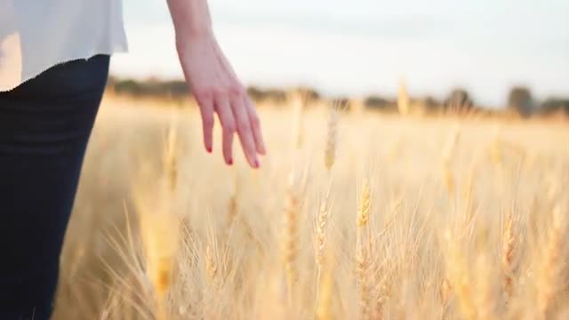 Woman's Hand Running through Wheat