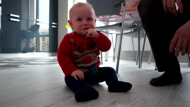 544544 - Crying Baby Boy Sitting on the Floor, Slow Motion