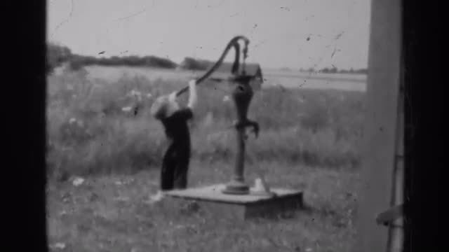 (8mm Vintage) 1962 Brother Helping Pump Well Water. Iowa, USA.