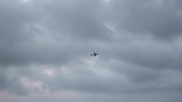 347850 - Distant plane crosses the cloudy sky