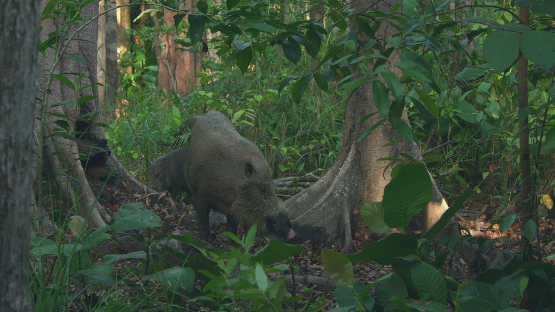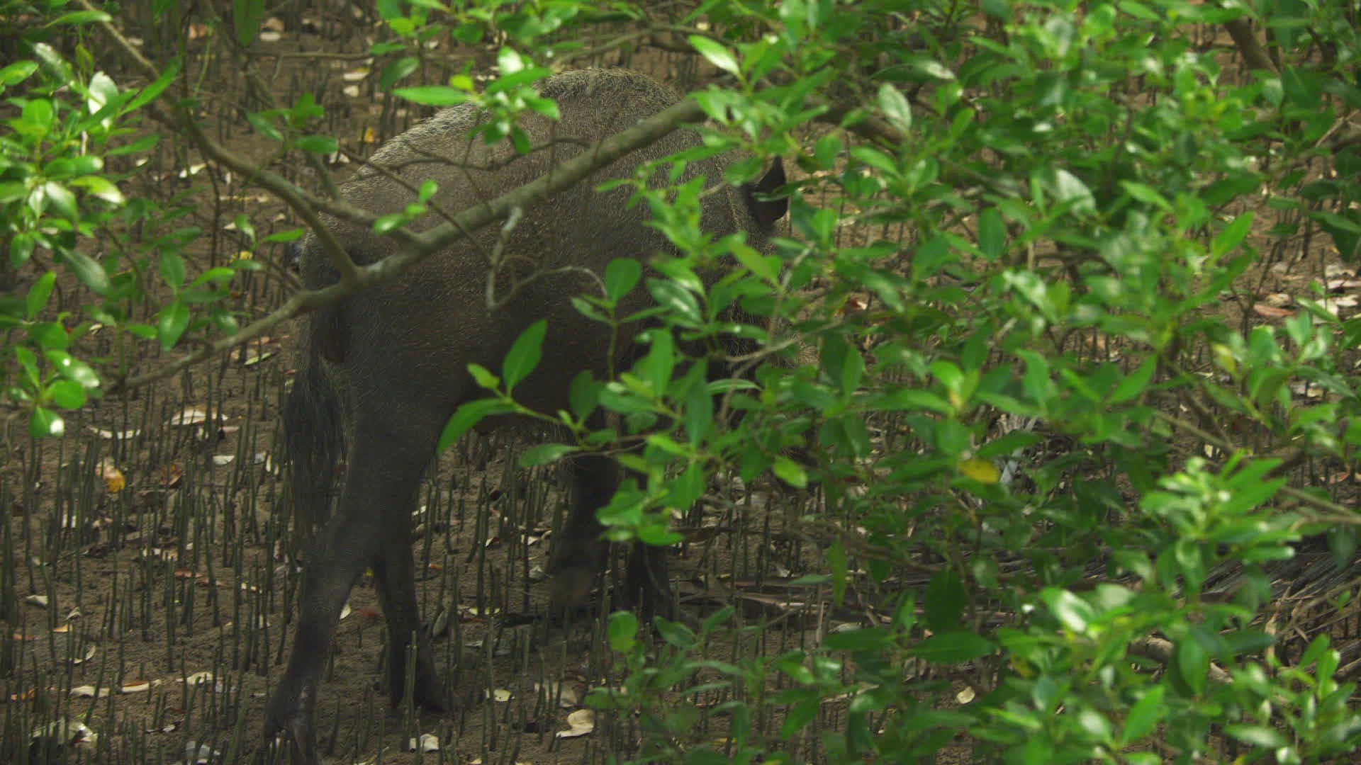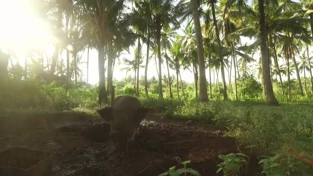 A pig forages in the Indonesian forest.