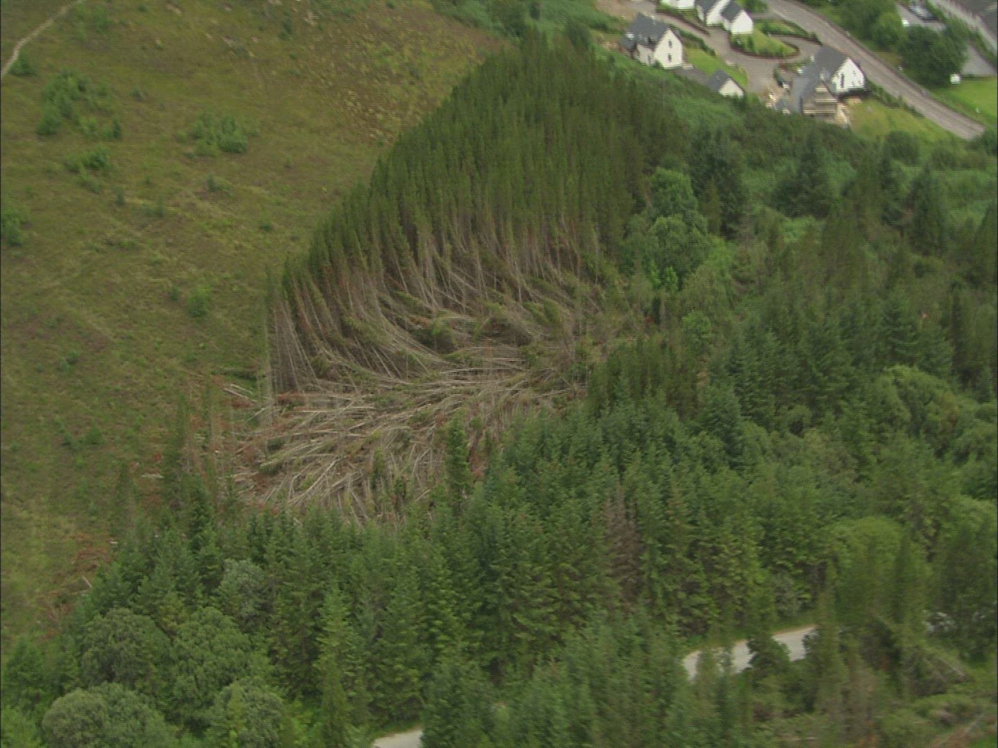 A not very strong storm in a hilly forest. You can see some clouds, rain, some fog & moving trees. I think they combine very nicely into a nice visual symphony.
