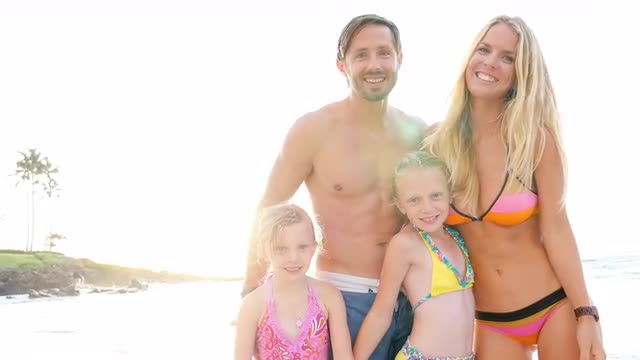 313613 - Family smiling on a beach