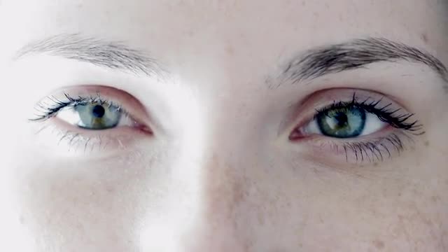 > Closeup of a beautiful woman smiling at the camera, slow motion
