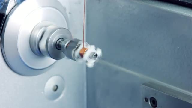 close-up shot of a copper coil winding machine manufacturing a storage choke