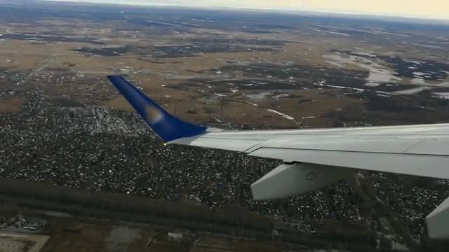 Aerial view from descending airplane, a suburb of Astana, Kazakhstan.