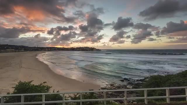 > Bondi Stone cutting with waves crashing and dogs