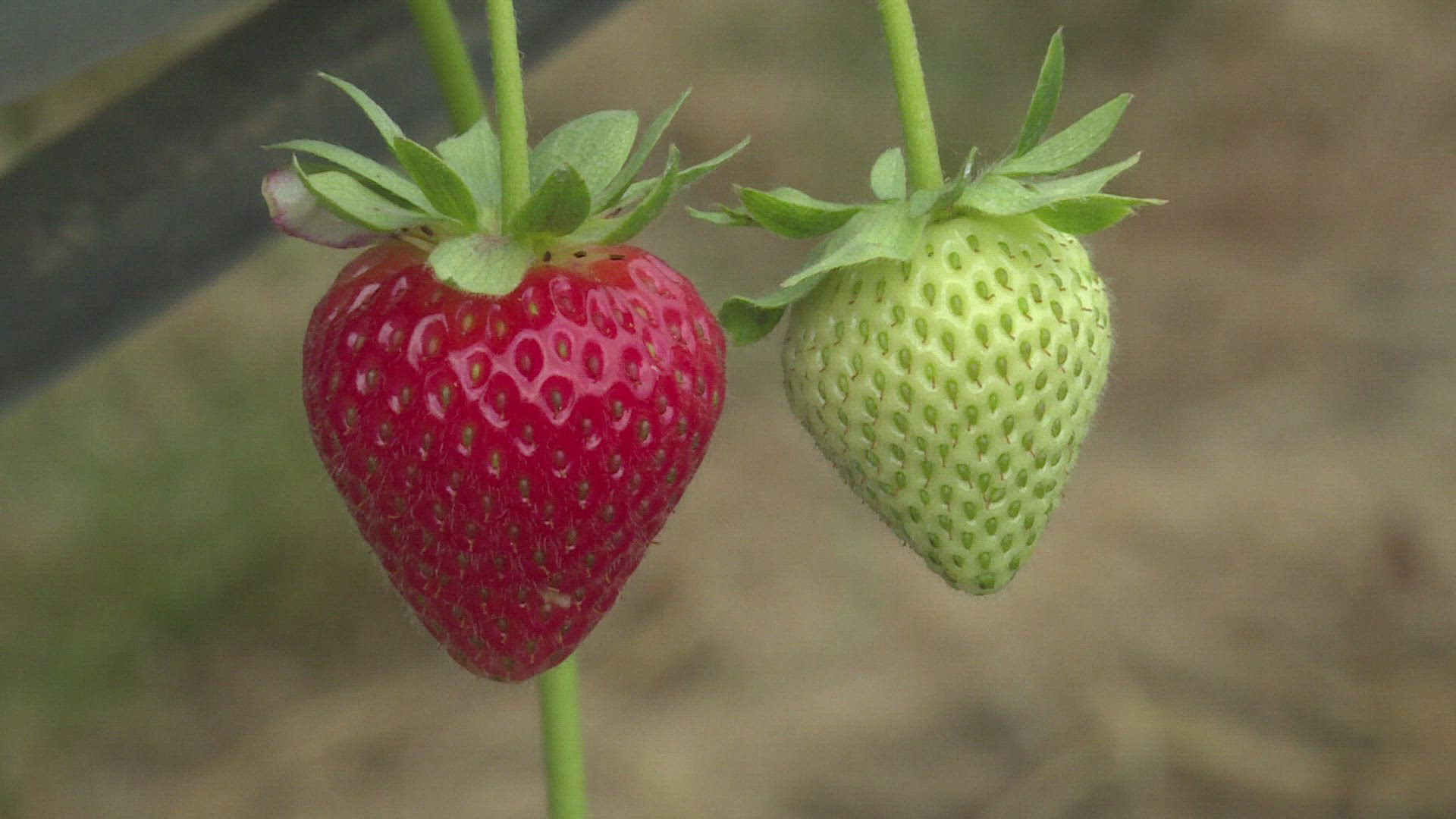 ARKANSAS, USA - 1965: Family hand picking strawberry crops on hands and knees.