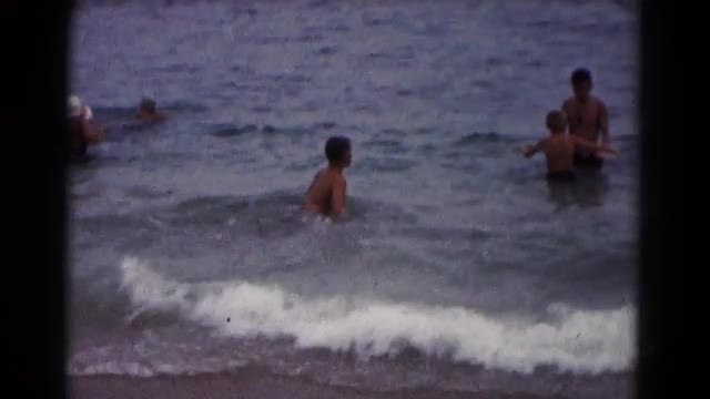 780602 - Children Swim in the Sea. Sunset. the Child Jumps Into the Water. Italy.