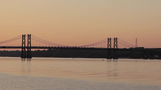 > Bridge over the wide Mississippi at golden hour