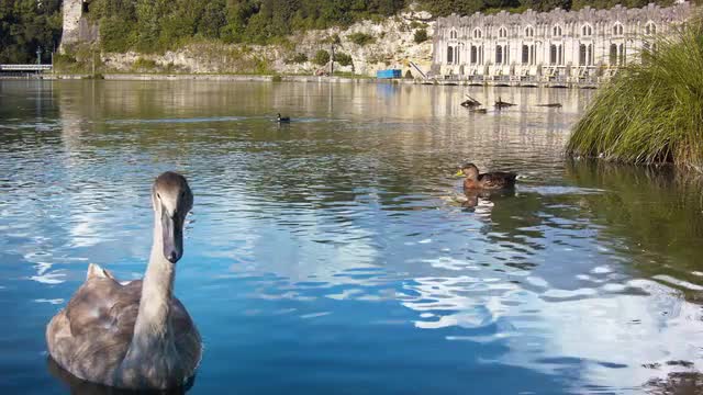 Ducklings in the blue waters of Adda river