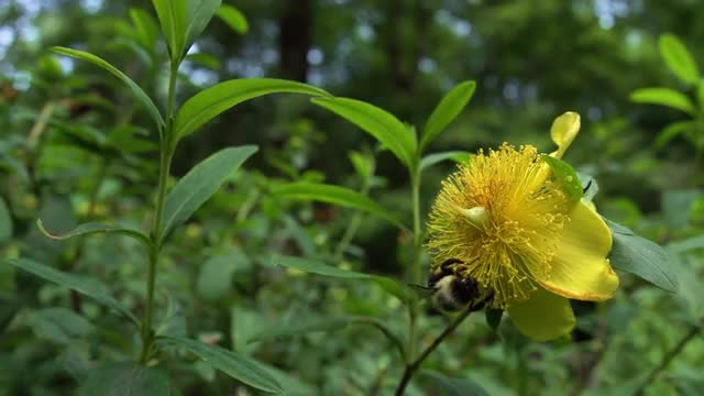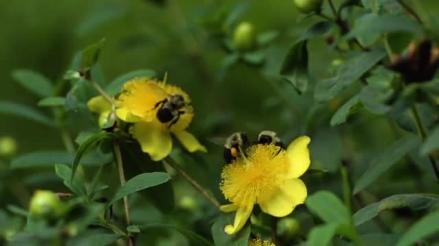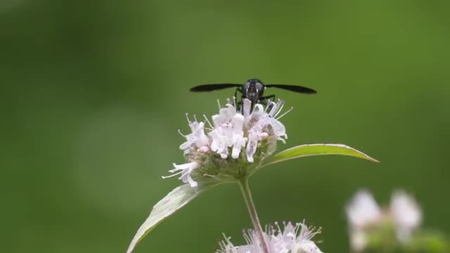 669324 - Orange wasp feeding on mint flower, bee & fly flyby