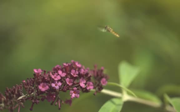 665080 - Bumble take off & landing on mint flower blowing in wind, high speed