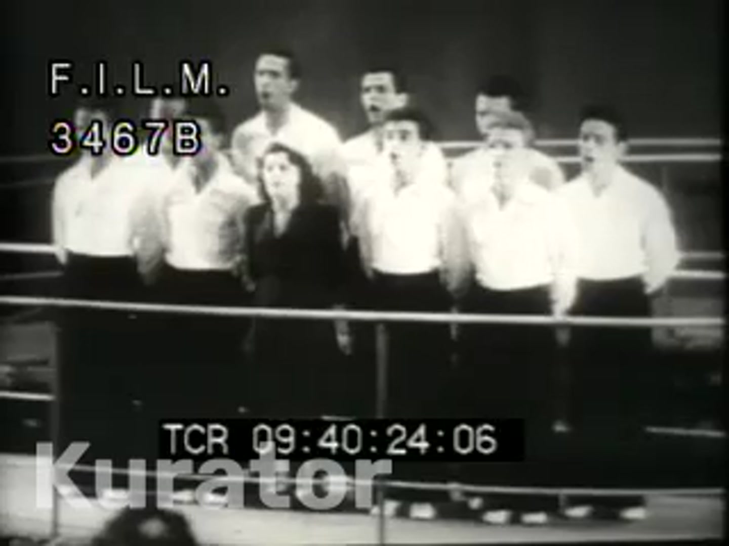 The Faces performing, while Rod Stewart sings and throws the mic stand in the air.