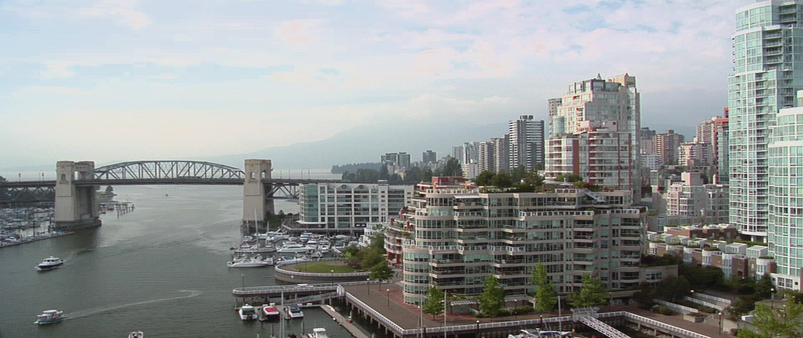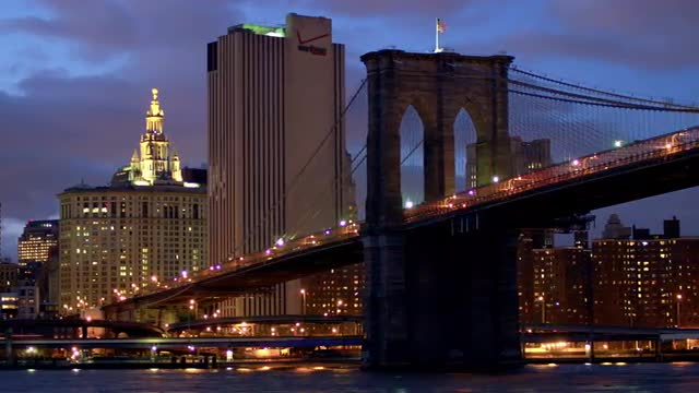 > View of the New York City Skyline while floating the East River by ferry.