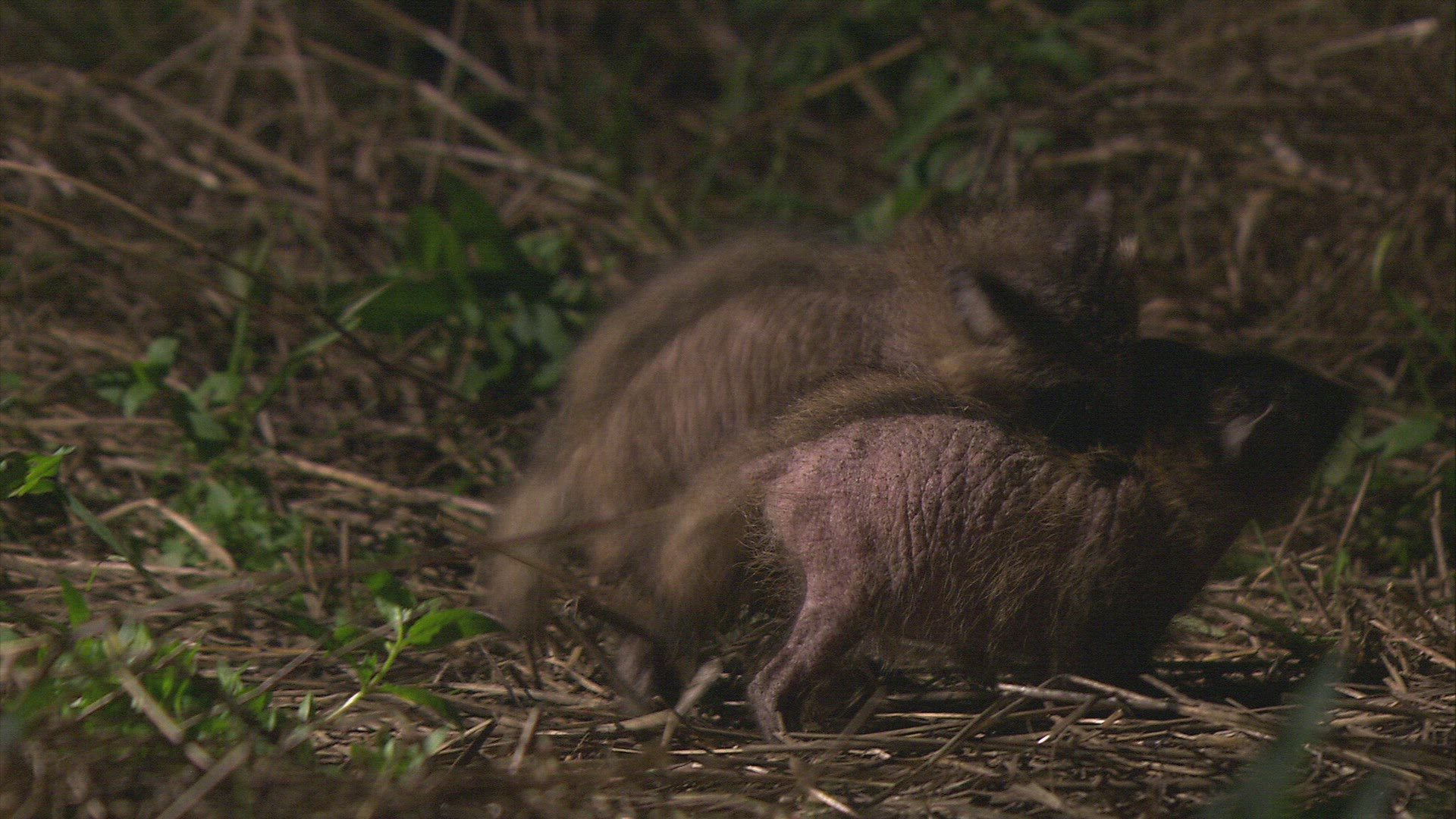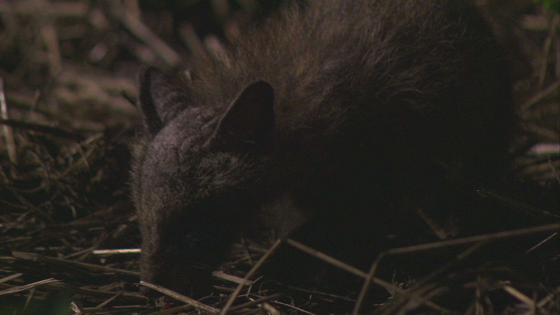 ALABAMA, 1941: Man handling a wild baby racoon in the rural backwoods.