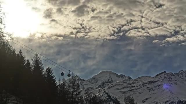 The Petit Combin looming in the distance while the télécabine in Verbier spins and the clouds move.