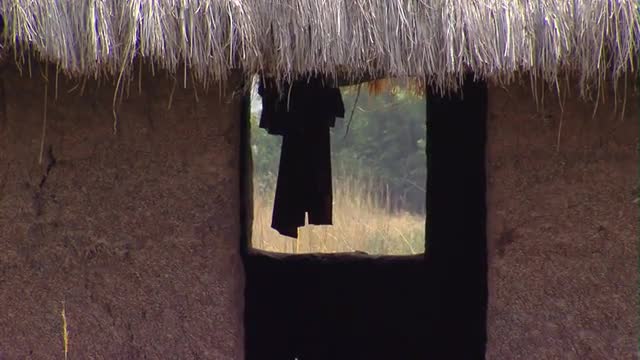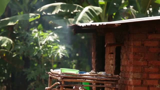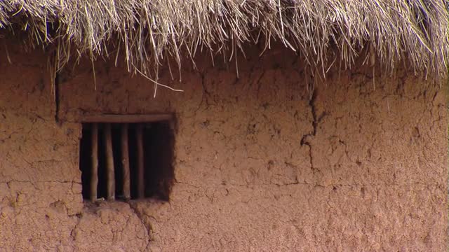 A traditional African hut mad from wood and mud in a slum in Uganda