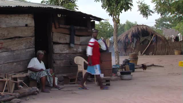 > A traditional African hut mad from wood and mud in a slum in Uganda