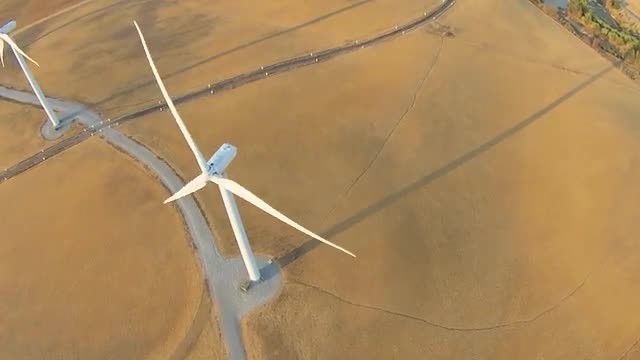 The camera flies high above, tilting up from a beach pier to a row of oceanfront houses and the marshes beyond.