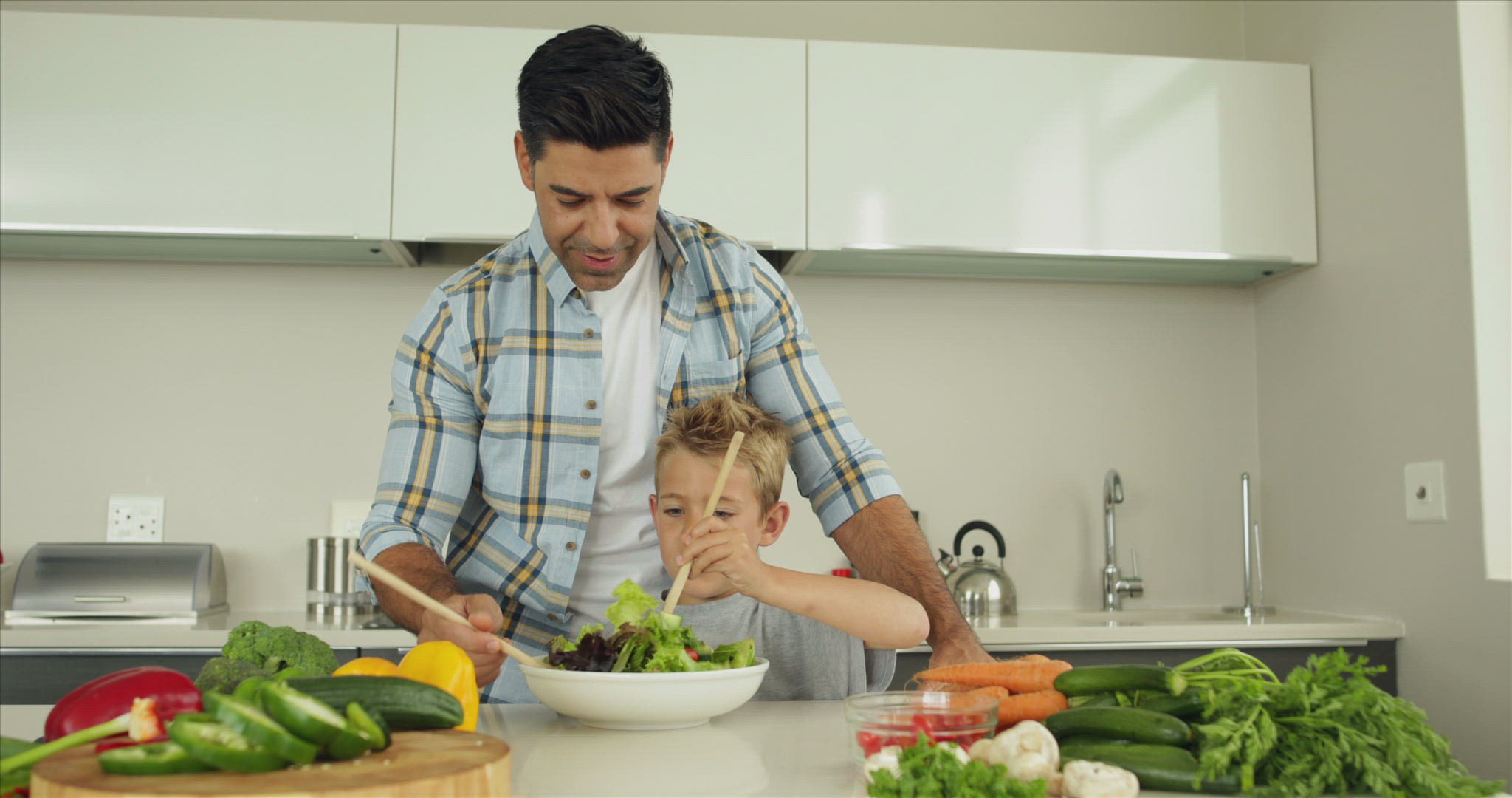 BOULDER, CO. USA - 1973: Dad teaching son about how to carve a holiday turkey.