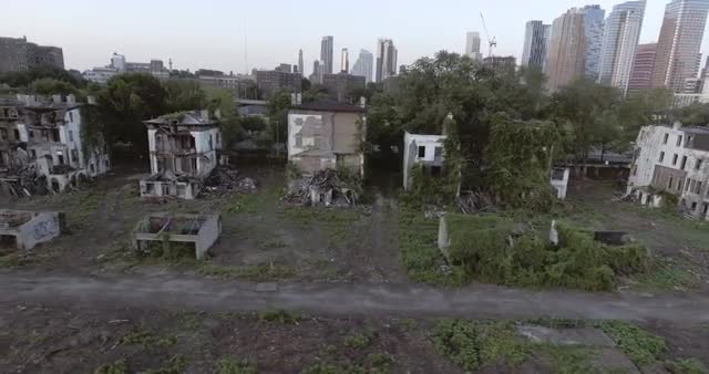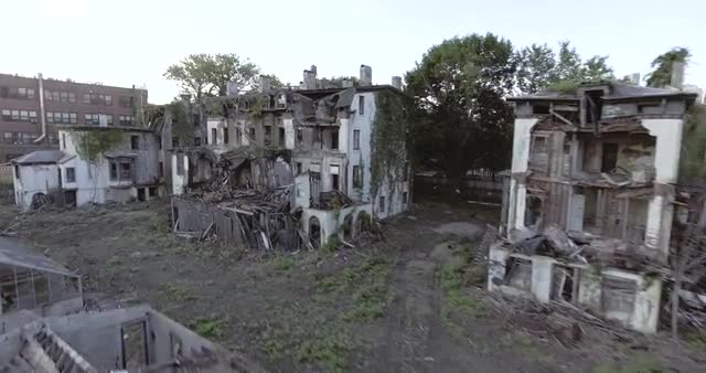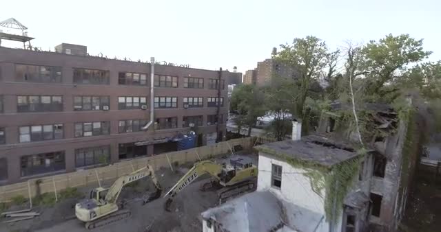 Aerial fly in over buildings in the SOHO district of lower Manhattan.