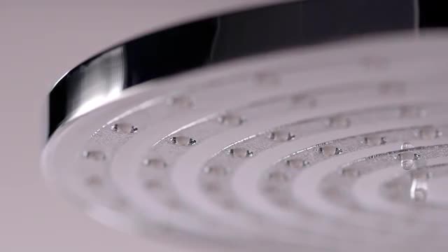 Slow Motion Of Water Drops From The Showerhead And Water Flow Starts