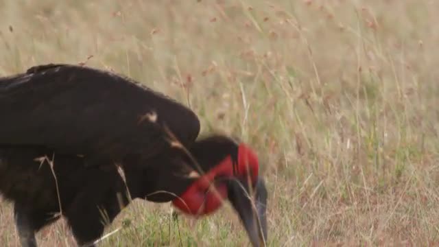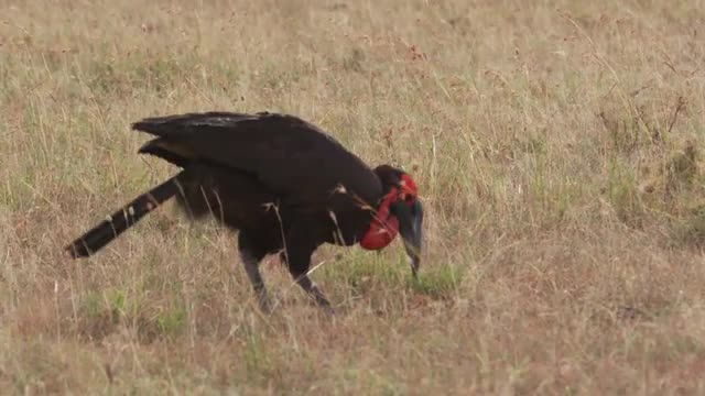 Ground hornbill feeding in the Masai Mara National Reserve.