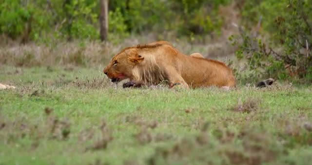 474142 - Young Male Lion feeding on Baboon