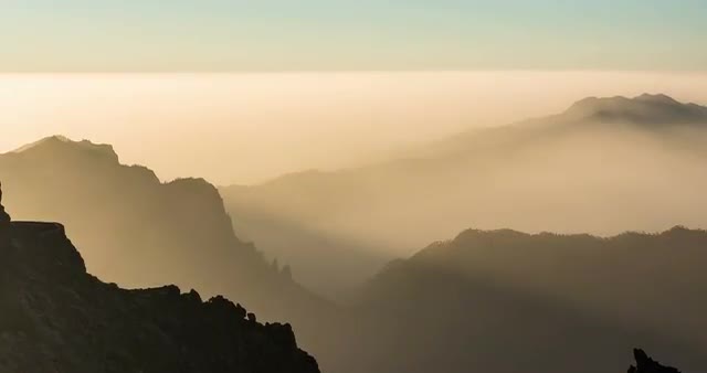 Caldera de Taburiente La Palma Time-lapse of clouds swirling round looking down into inactive caldera over rocky pinnacles