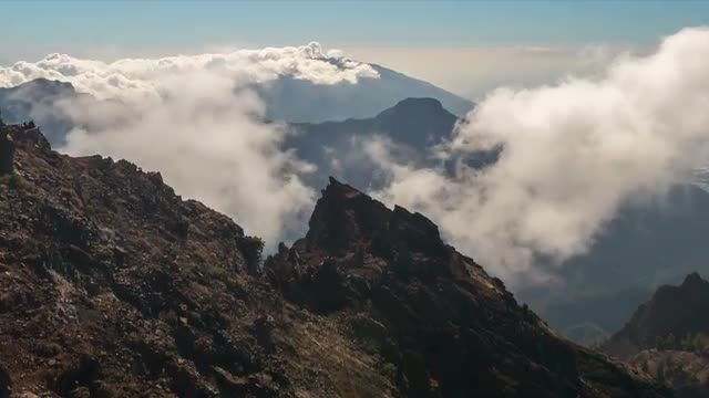 > Caldera de Taburiente Time-lapse of Clouds with rocky pinnacles