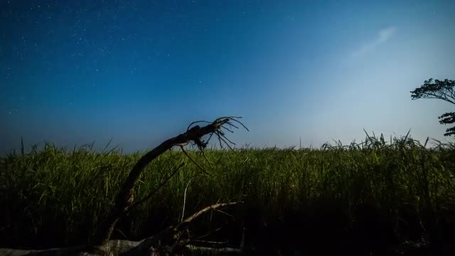 Moon setting Into sea La Palma followed by stars astro time-lapse