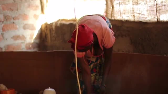 322367 - African lady tending to chicks in hatchery