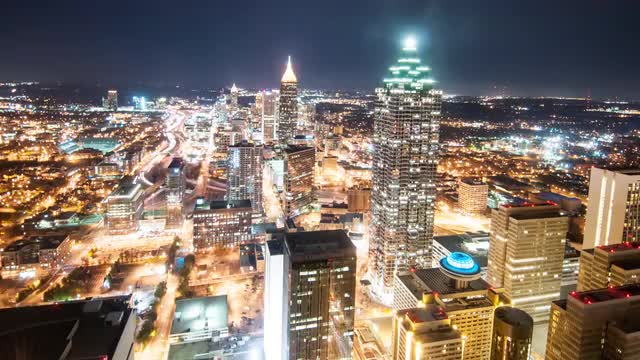 Timelapse view overlooking Atlanta at night from the rooftop.