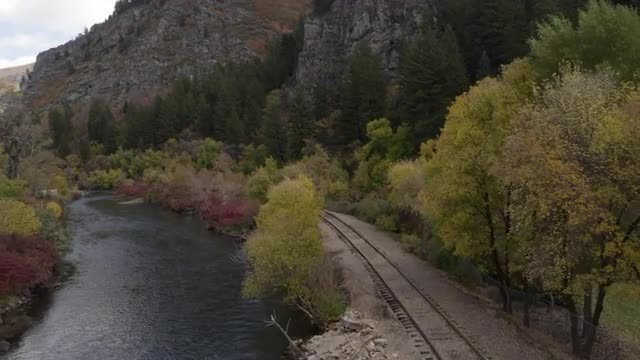 "Heber Creeper" train in Utah, rolls through a beautiful fall landscape.