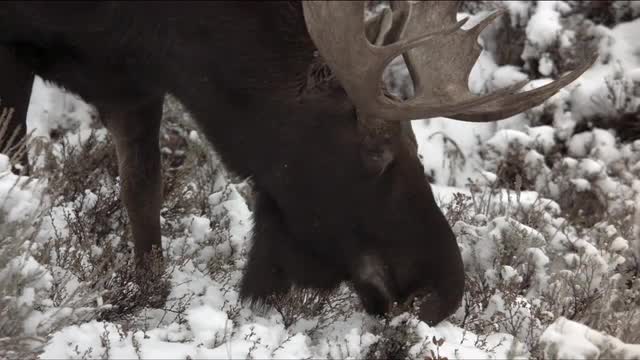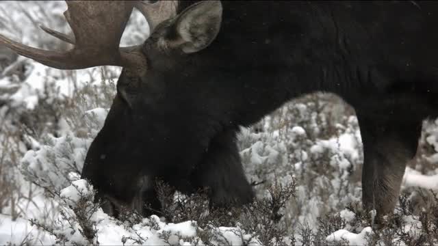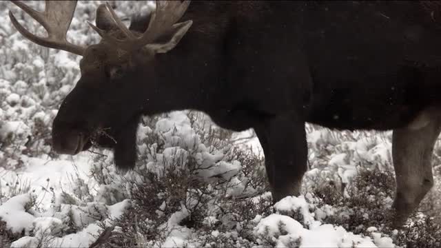Two moose calves exploring the Gros Ventre River nearby their mother as she watches from the willow bushes. Grand Teton National Park, Wyoming