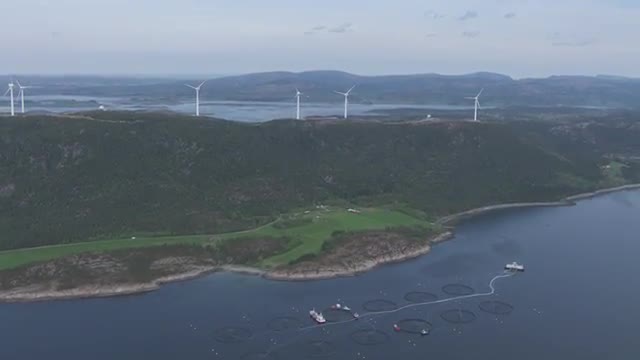Aerial footage of windmills.