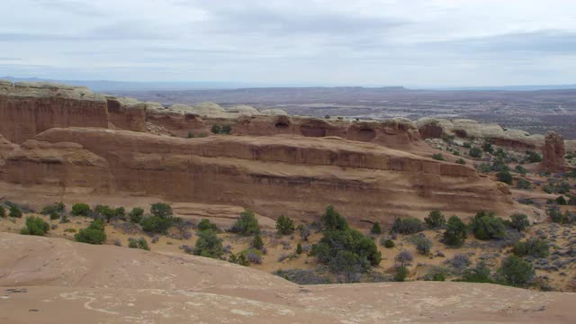 A static shot of the sandstone layers in Arches National Park.