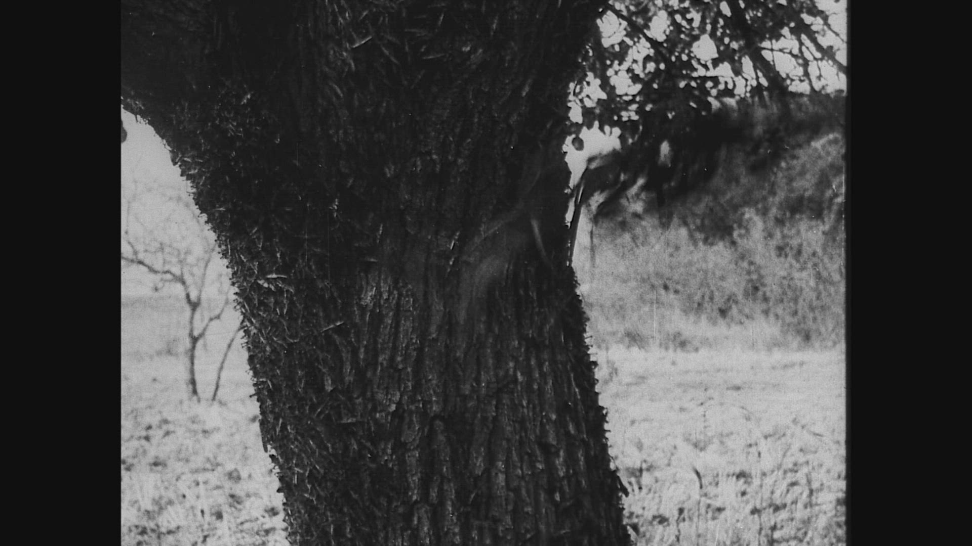 794823 - Ants crawling up and down a tree trunk, wide static