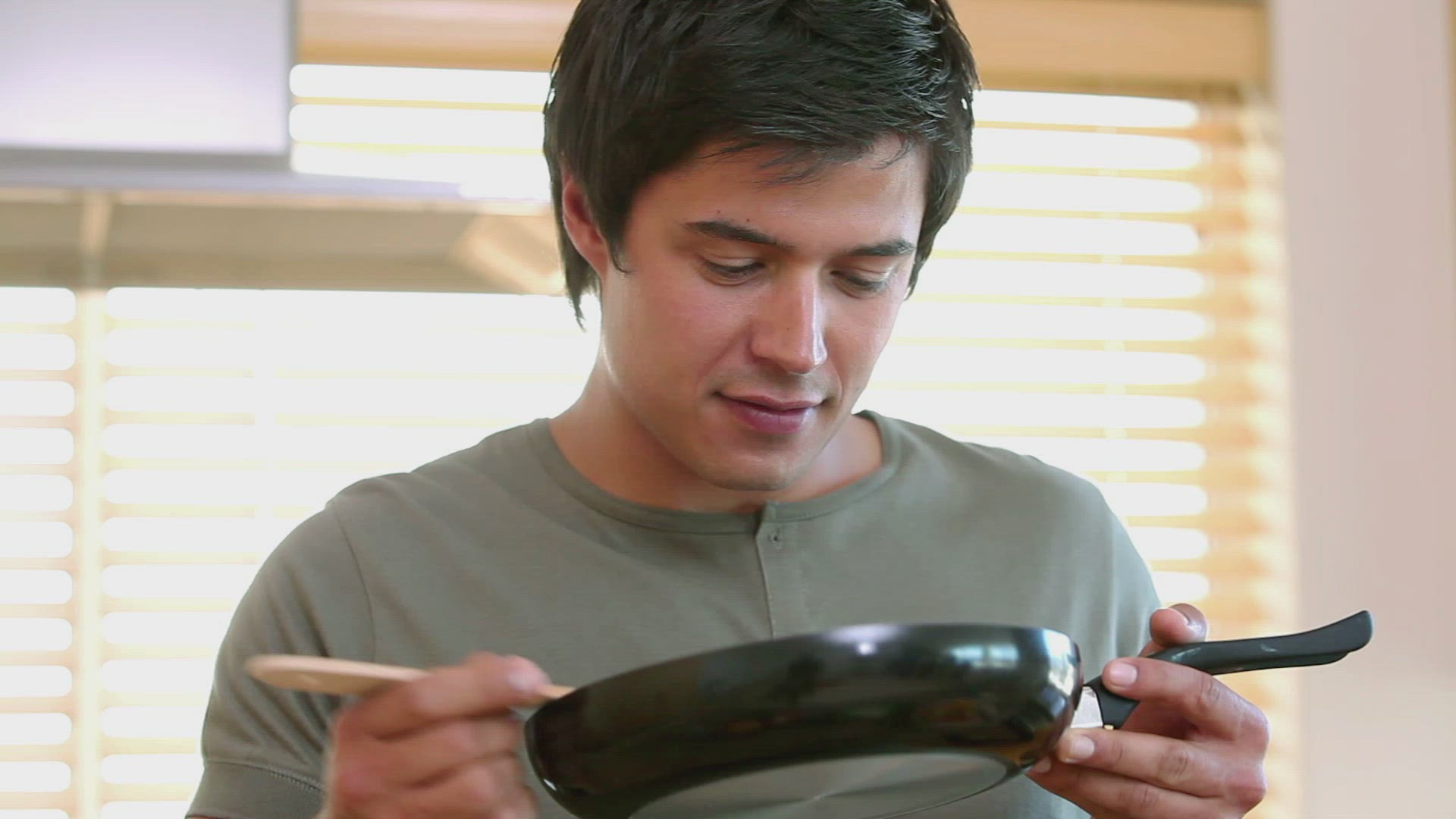 1973: Man grilling food outside trailer house for wife and baby.