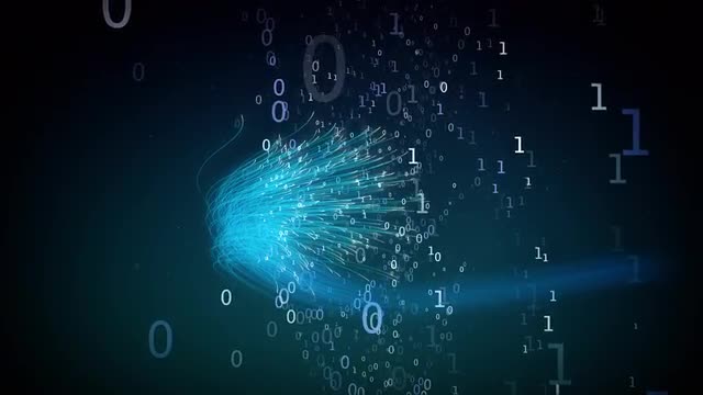 Abstract three-dimensional digital space through which the flies bunch of ones and zeros