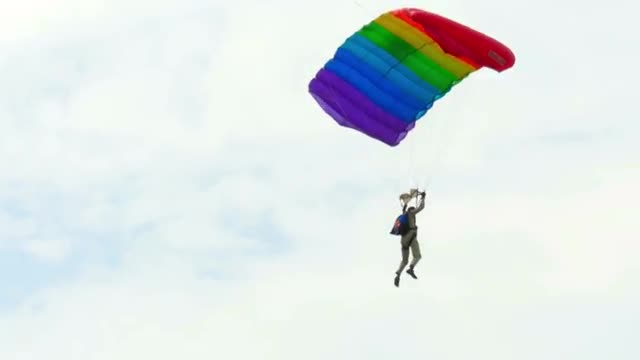 NOVOSIBIRSK, RUSSIAN FEDERATION - JULY 26, 2015: Paratrooper group aerobatics. Airshow -Wings of Victory- at the Mochishe aerodrome, on Jul.26, 2015
