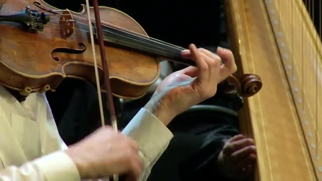 Violin and hands (in the background harp).