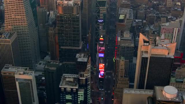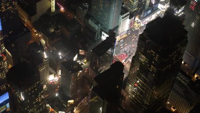 > An evening time lapse view of the busy activity of visitors at Times Square in Manhattan.
