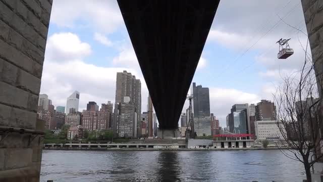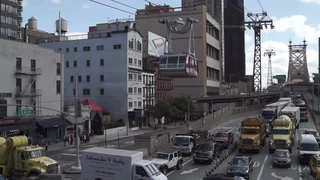 NEW YORK - OCTOBER 18: (Time-lapse) Mid-day traffic enters Manhattan from Queens on the Queensboro Bridge as the Roosevelt Island Tram operates nearby on October 18, 2012 in New York.