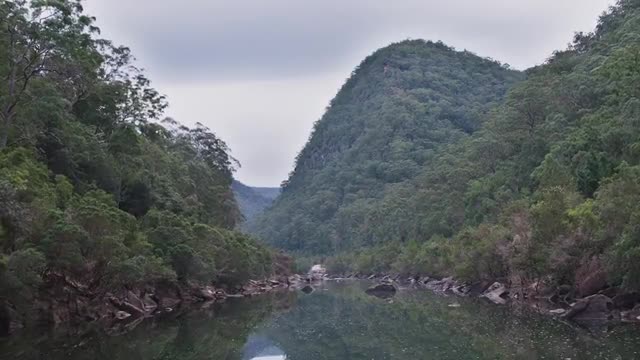 Aerial over the wild Colo River in the Blue Mountains World Heritage Area, Wollemi National Park