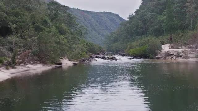 Aerial track of the wild Colo River gorge in the Blue Mountains World Heritage Area, Wollemi National Park