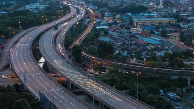 1115538 - Day to Night Timelapse View of Washington Monument and Jefferson Memorial over Busy Freeway